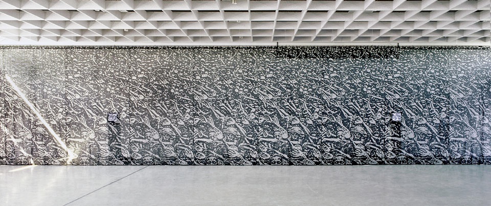 «Suum Cuique \ Idem Cuique» | Vorhänge Jacquard Feinstrick | 3,20 x 21 Meter | Video | 1998 / 2009