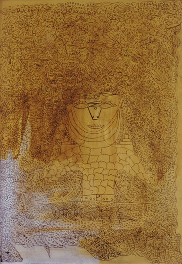 Brigitte Islam-Saatz | «Brigitte - Natur» | Acryl + Bleistift auf Graukarton | 100 x 70 cm | 2000