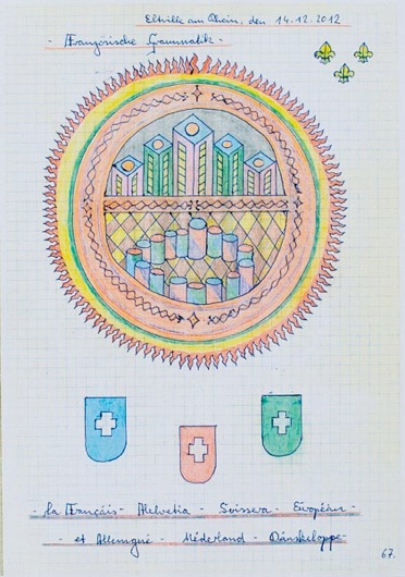 Klaus Ludwig Weber «Französische Grammatik» «Kostruktionszeichnungen» | Kugelschreiber, Buntstift, Bleistift auf Papier | 2012