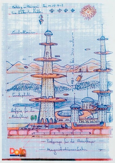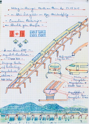 Klaus Ludwig Weber «Canadian Railways» «Eine Trabantenstätte»| Kugelschreiber, Buntstift, Bleistift auf Papier | 2012