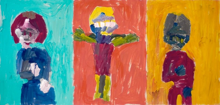 Stephan Kramer | «Kreuzigung mit dem Apostel Johannes»| Acryl auf Graukarton | 4 Teile | 100 x 210 cm | 2002