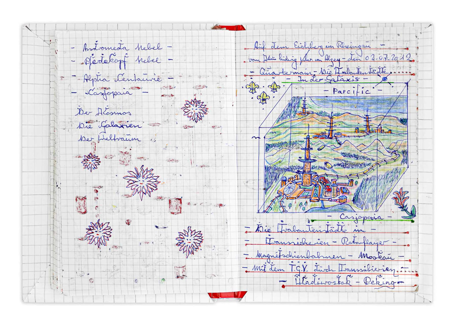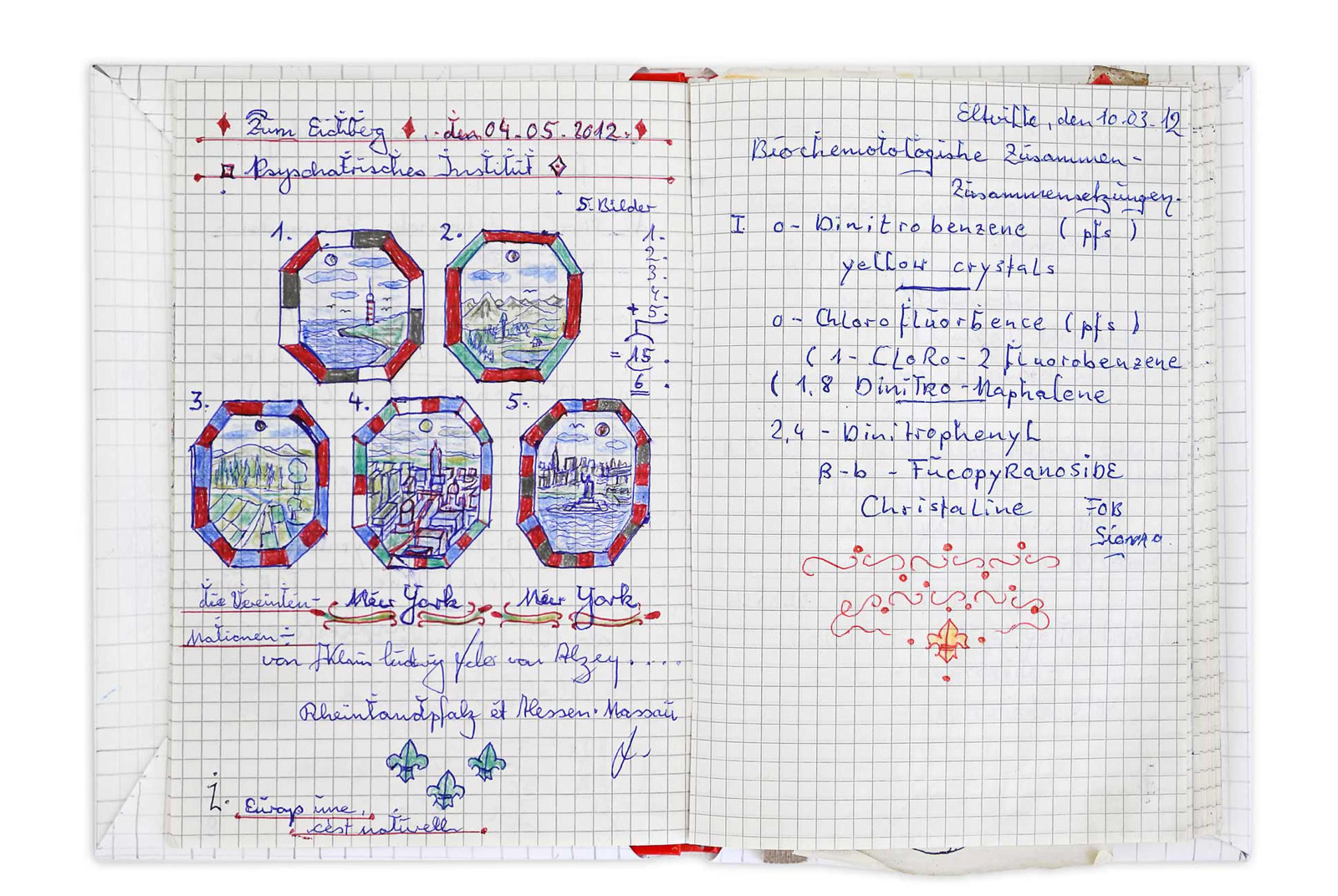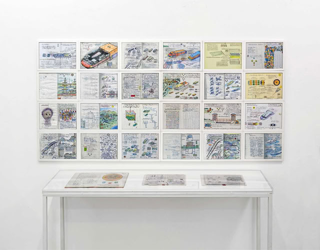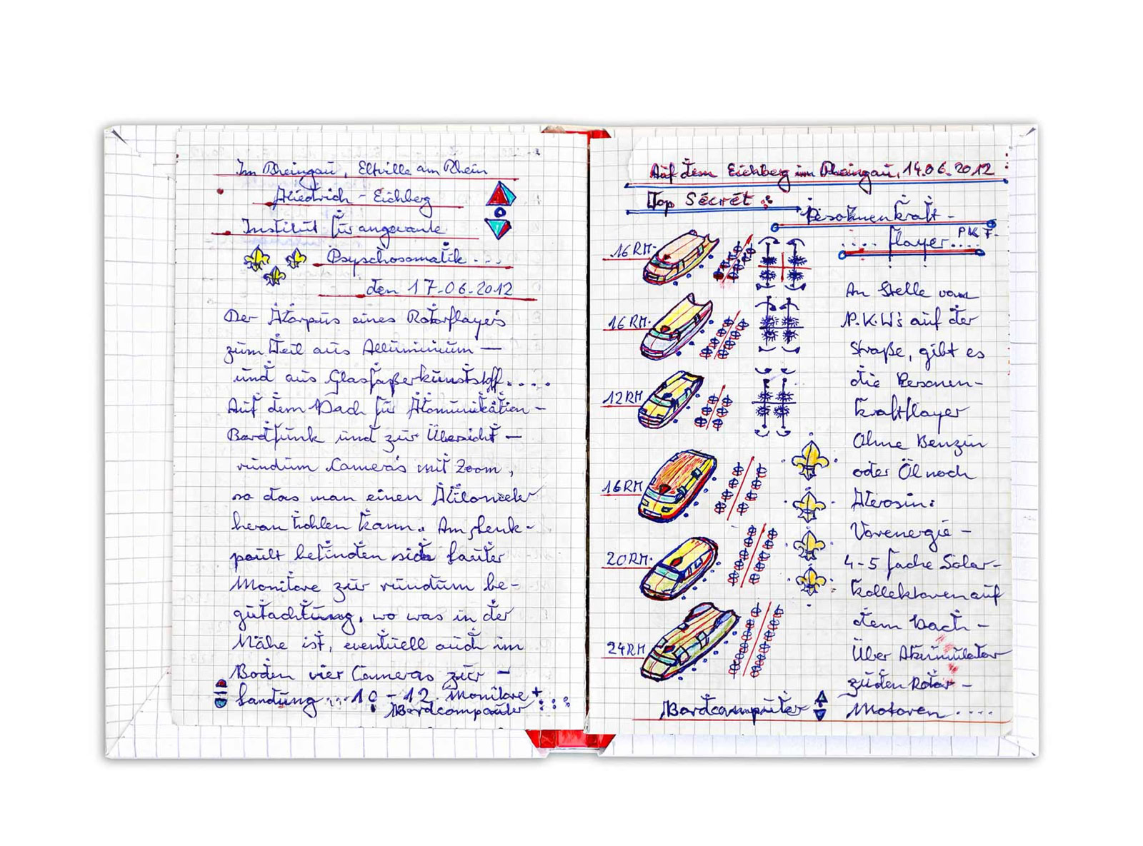 Viele Institutionen hat Klaus Ludwig Weber angeschrieben. Nicht immer hat er, wie aus dem Bundeskanzleramt, eine Antwort erhalten. Seine „Zeichnungen aus naturwissenschaftlichen Studien“ sind primär nicht als ästhetische Gebilde zu verstehen, sie dienen vielmehr der Visualisierung, der Klärung und dem Transport seiner Ideen und Entwicklungen. Auf ihnen befinden sich Notizen, Erläuterungen und Berechnungen zu zukunftsträchtigen Erfindungen.