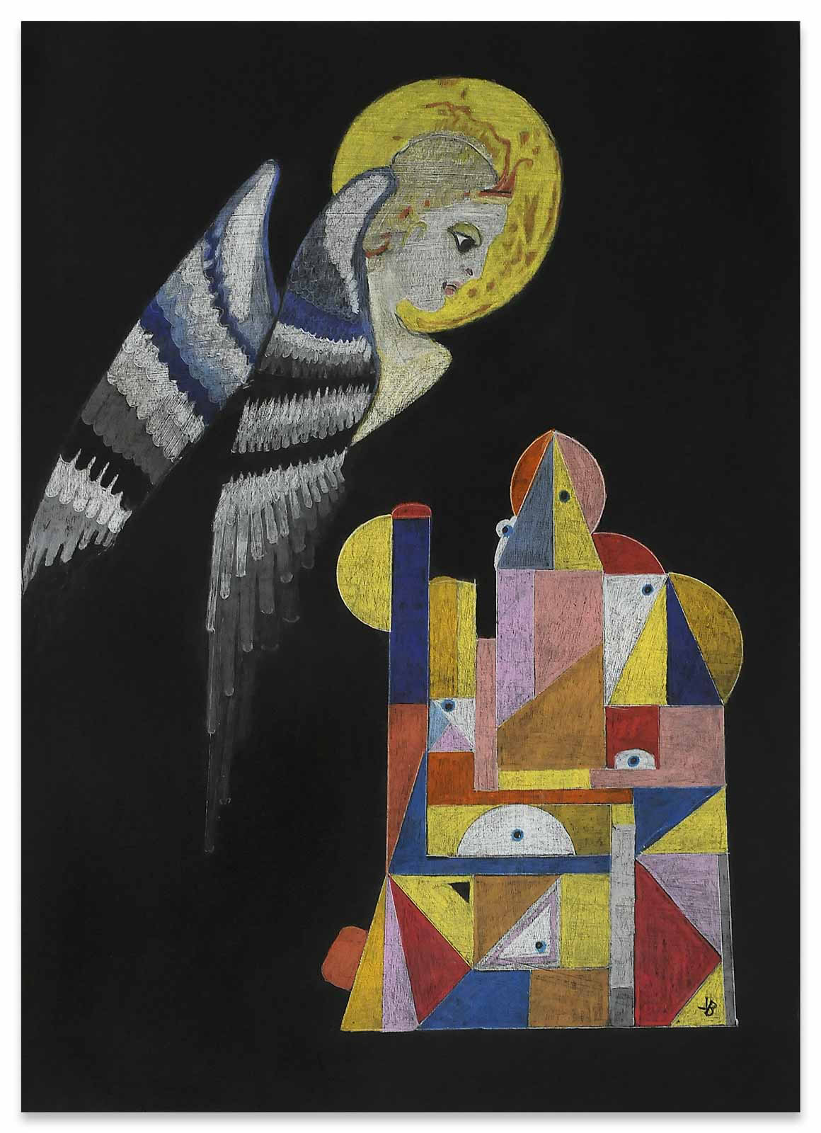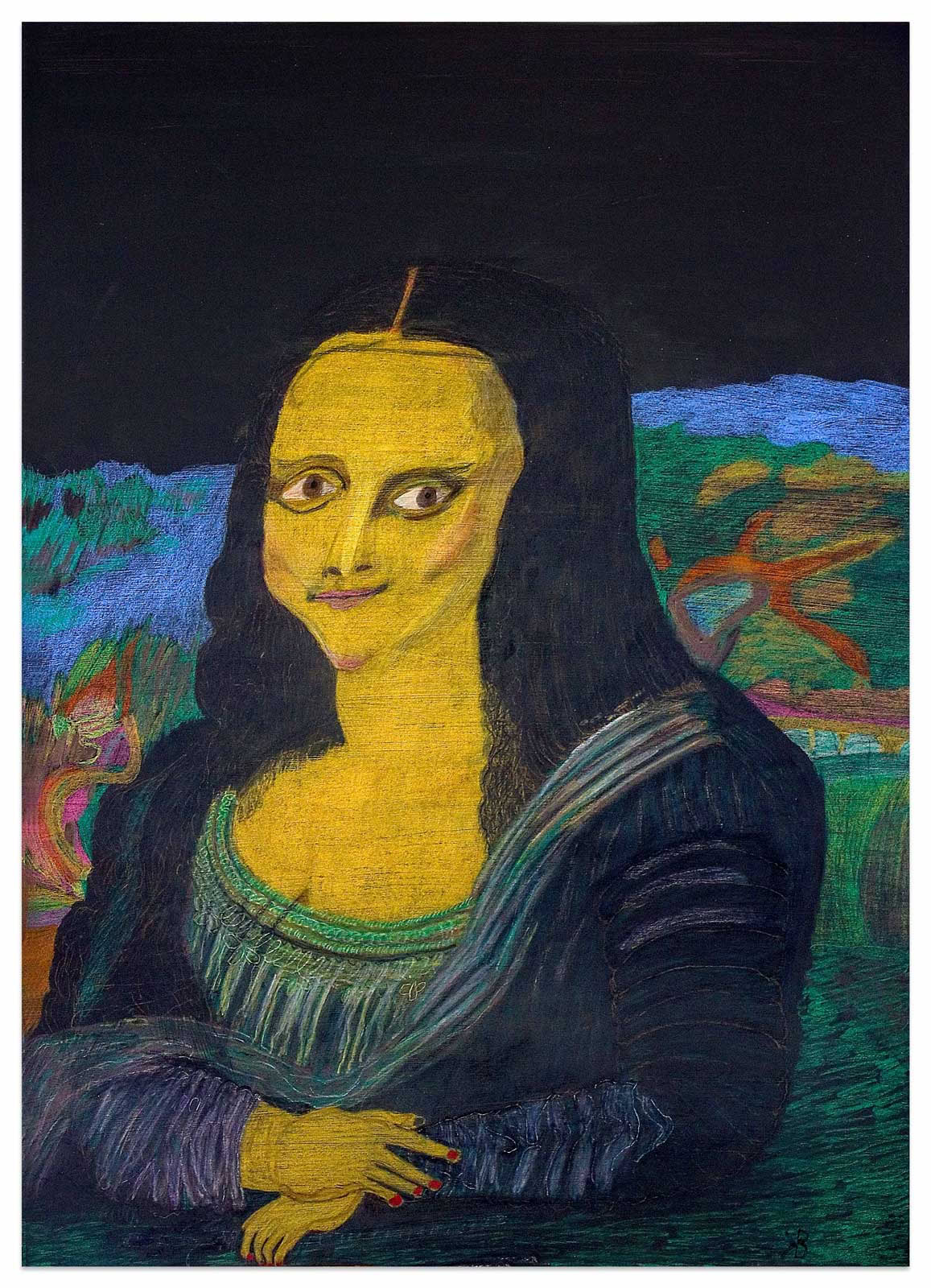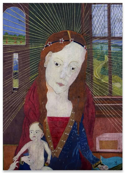 Sein Vater war Polizist in Litauen, „auf der Flucht erschossen“, seine Mutter während der Nachkriegswirren mit vier Kindern vollkommen überfordert. Bruno Krauledies kam erst ins Heim, dann in eine Gastfamilie auf einen Bauernhof. Hier war er der Knecht. Nein, er hatte nicht immer Glück im Leben. Ausbildung zum Schmied, später Gelegenheitsarbeiter, Binnenschiffer, Kranfahrer und schließlich verdiente er sein Geld als Straßenmusikant. Und trotzdem: seinen Humor hat er nicht verloren. Es scheint fast so, als sei er ihm nicht nur in die Augenfalten eingeschrieben, sondern als habe er ihn auch im Zeichenstift verinnerlicht. Bruno Krauledies arbeitet oft nach Motiven aus der Kunstgeschichte. So verlegt er eine Mariä Verkündigung auch schon einmal in den Rotlichtbezirk („Open“, 2012), oder kombiniert eine Mariendarstellung mit anderen Strahlungsquellen („Madonna mit Mikrowelle“, 2011). Zwölfmal wurde er erfolgreich reanimiert. Seine Nahtoderlebnisse mögen an der Tiefe seiner Bilder einen Anteil haben, die hinter den humoristischen Anspielungen auf ältere und neuere Meisterwerke ebenfalls zu entdecken ist.