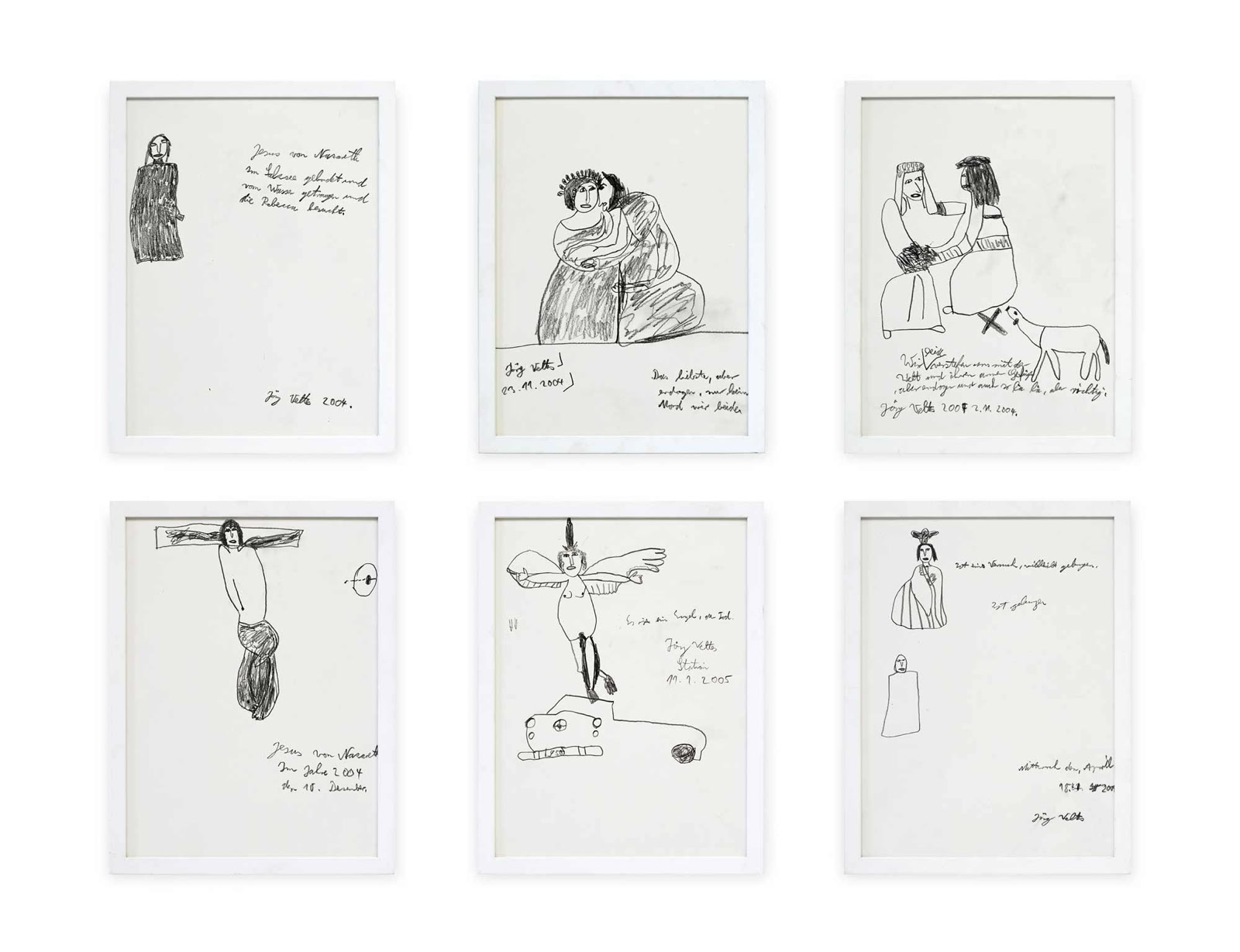 Religiöse Themen und Motive dominieren wiederkehrend seine Zeichnungen: „Ich bin es nur so da, ist endogen, aber ich habe das über Gott erfahren, er ist es ehrgeizig und von der Bakterie zu gelöst, aber der Hintergrund...“