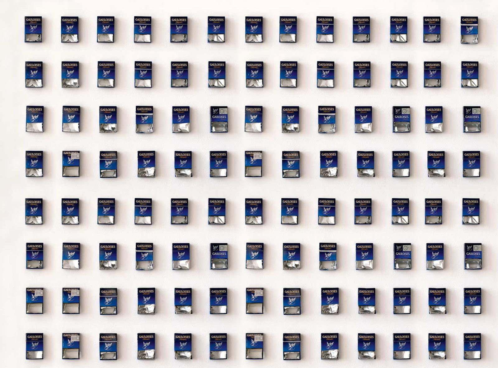 Mancherlei Bedenken zum Trotz haben wir einige seiner permanent angelegten Weltüberlebensstrategien wie auch zwei klassische bildnerische Produkte in diesen Band aufgenommen. In seinem „Rettungsprojekt gegen den Suggestivtod“ etwa entfernt er bei allen im Gebrauch befindlichen Zigarettenschachteln die Warnhinweise, oft mit dem einzigen verfügbaren Werkzeug, seinem Daumennagel: „Es kann ja immer passieren, was darauf geschrieben steht, und man sollte nichts beschwören.“