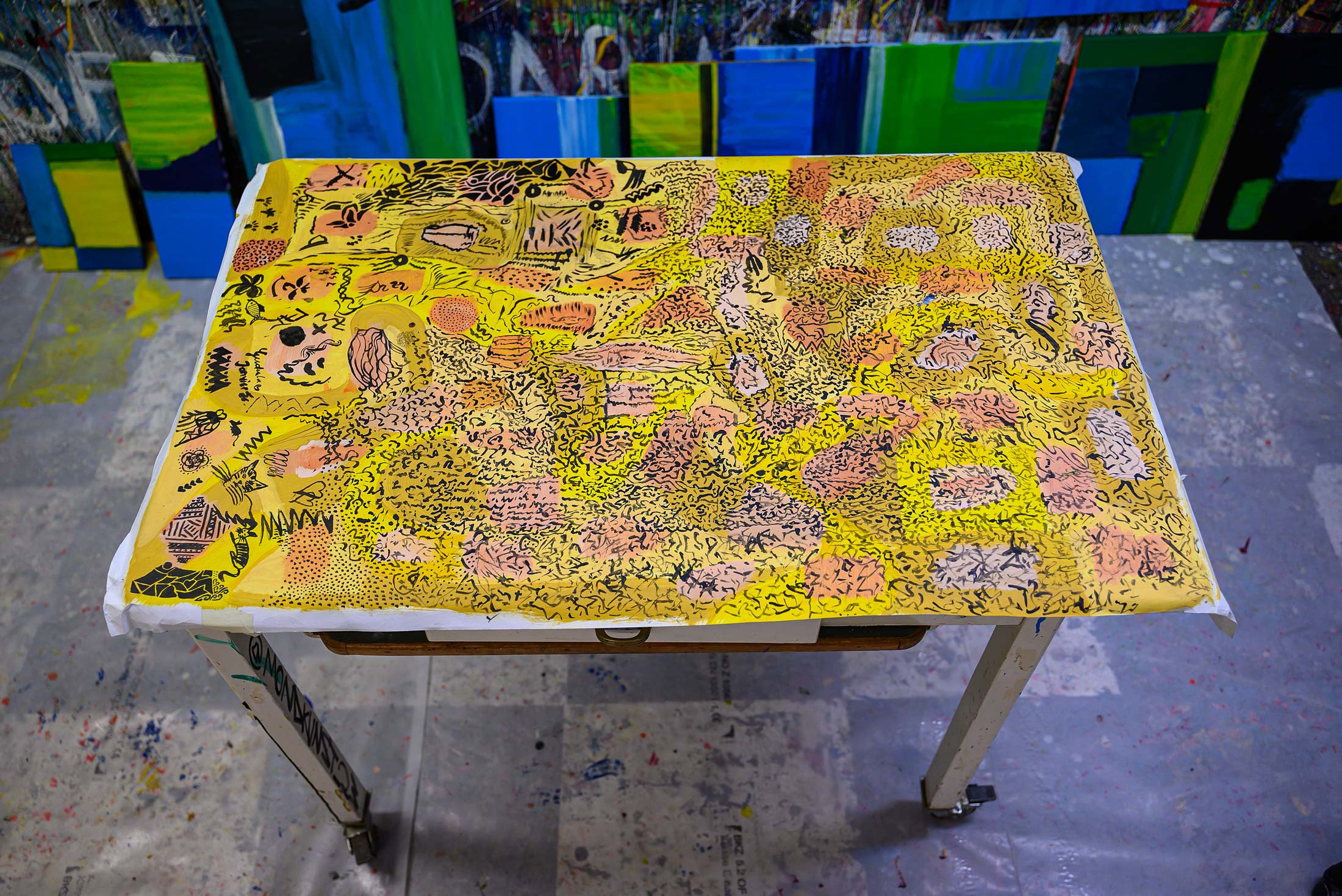 Gemeinschaftsarbeit Ansicht 1, Acryl auf LWD