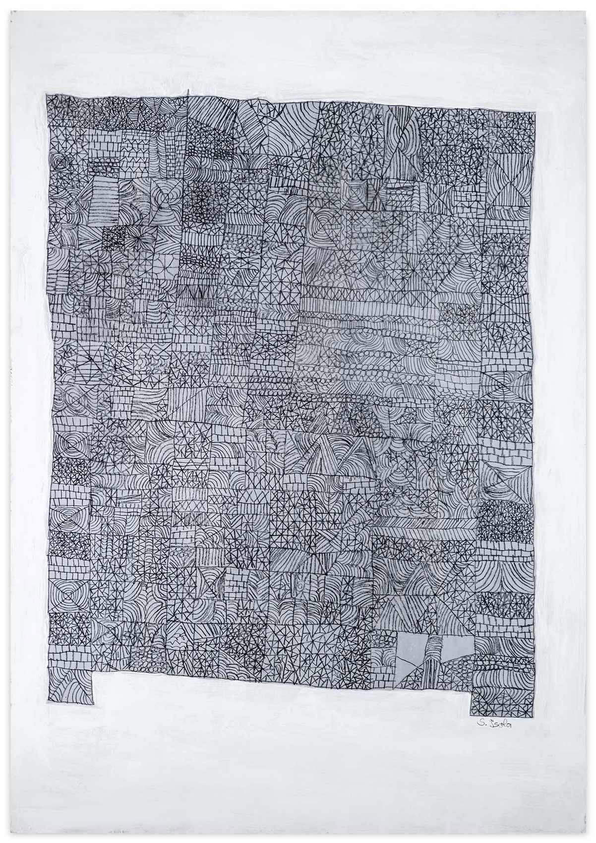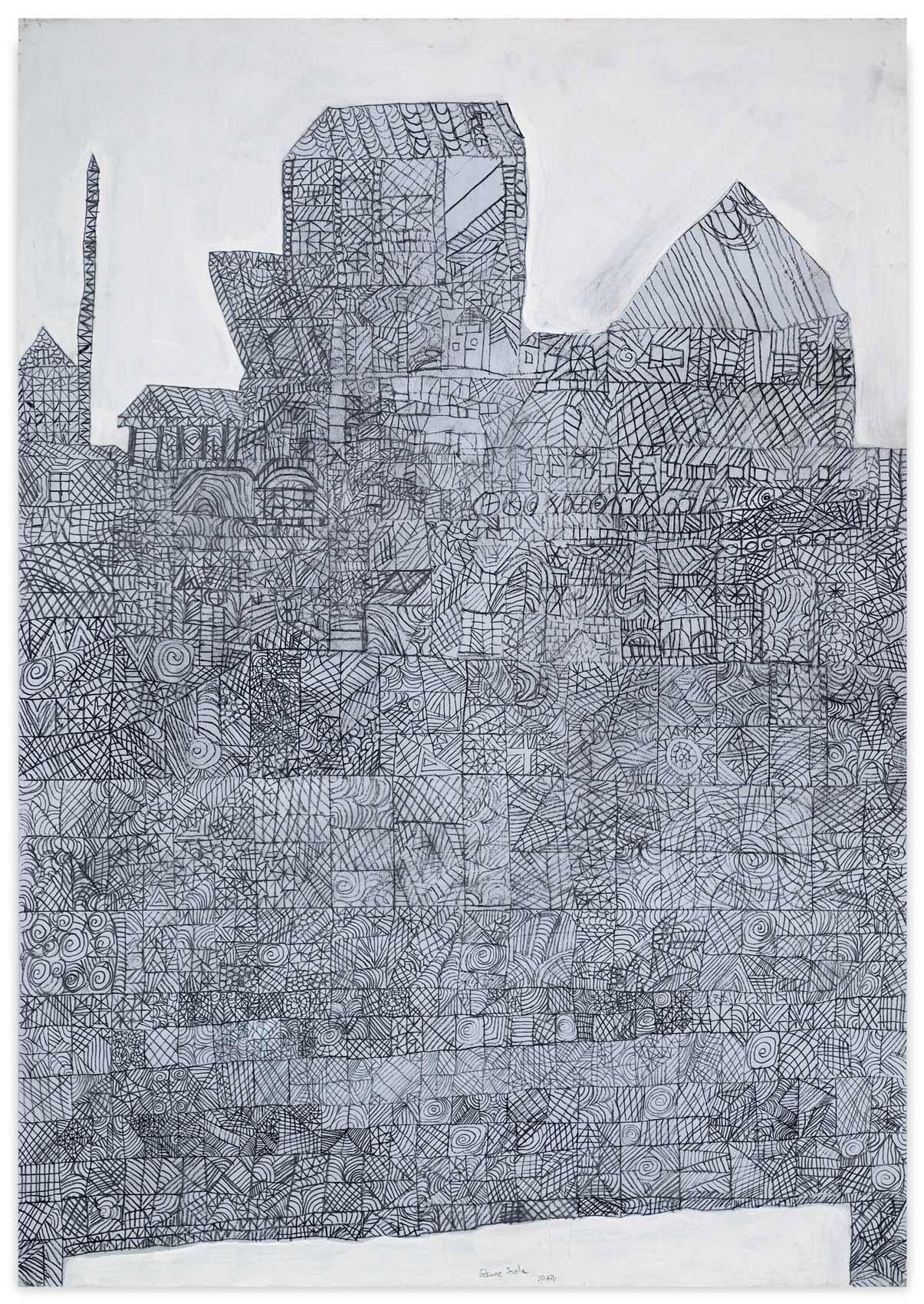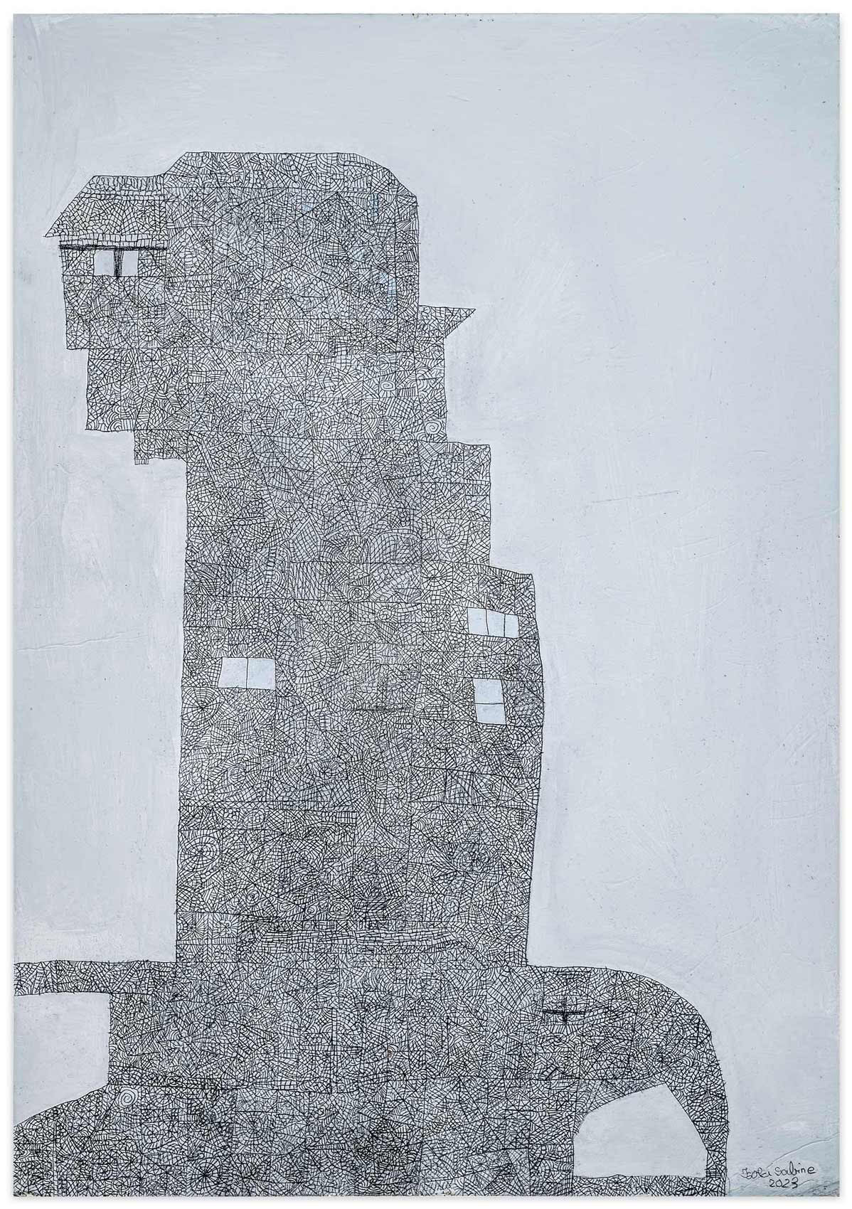 Baut man eine Haus, muss man mit dem Fundament anfangen. Man ist angewiesen auf Statik und methodische Vorgehensweise. Ansonsten kehrt der Stein nach Aristoteles zu seiner natürlichen Eigenschaft zurück: der Haufenhaftigkeit. Zeichnet man eine Haus, kann man allerdings mit den Wolken darüber anfangen. Sabine Isolas Architekturen sind keine Bauzeichnungen. Sie entstehen vielmehr in einem organischen Wachstumsprozess. An einer Stelle begonnen, beginnen sie ihr Eigenleben, wachsen fort. Sabine Isola fehlt die Übersicht beim Zurücktreten. 15 Prozent Sehkraft besitzt sie noch. Nur aus nächster Nähe sieht sie noch einigermaßen klar und scharf. Gleichwohl, sie hält einen bildnerischen Konstruktionsplan ein. Auch wenn ihre Architekturlandschaften bisweilen nicht in den sondern aus dem Himmel wachsen.