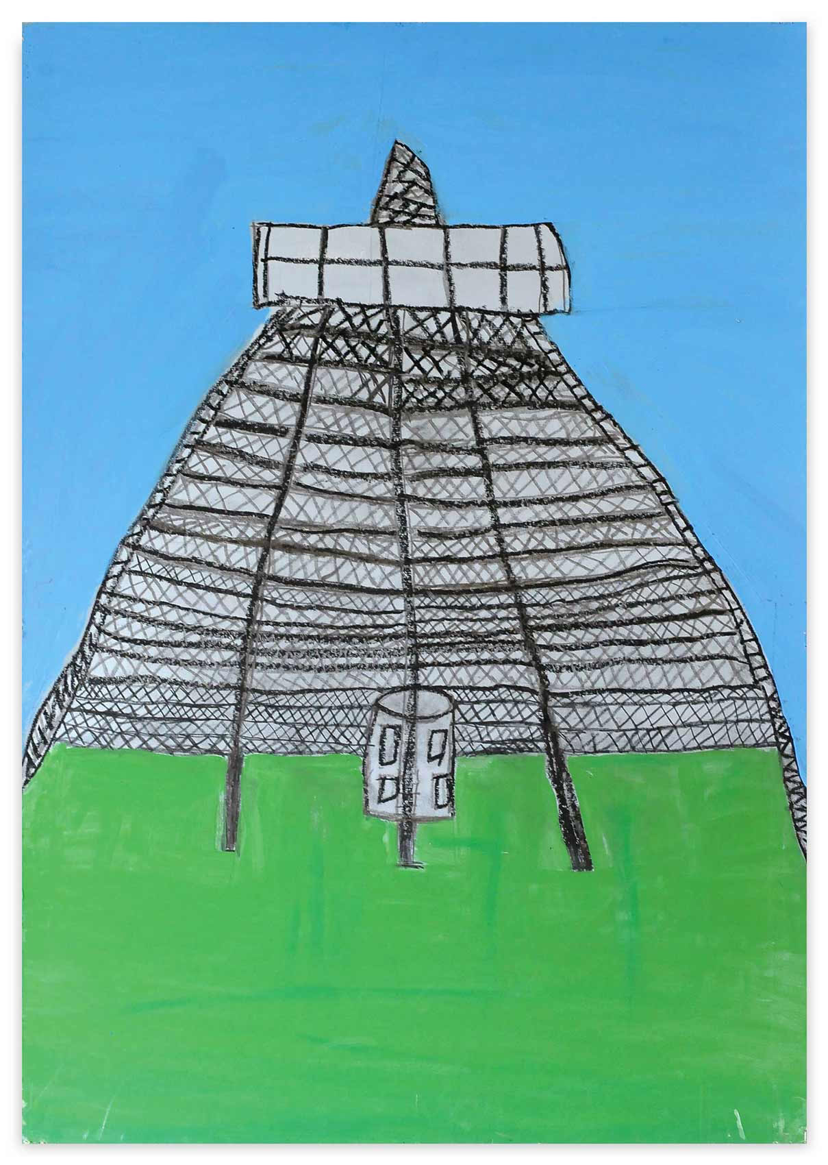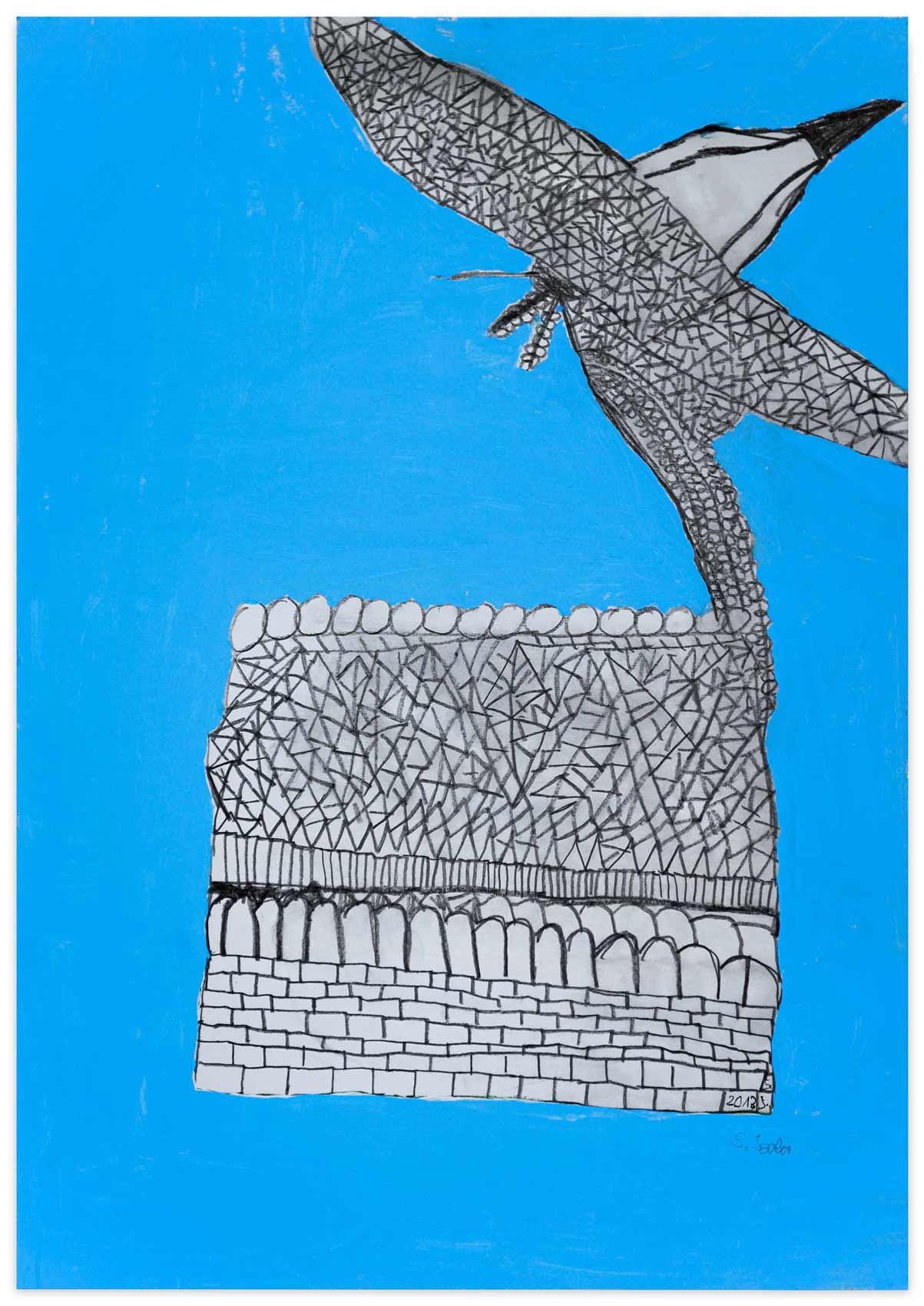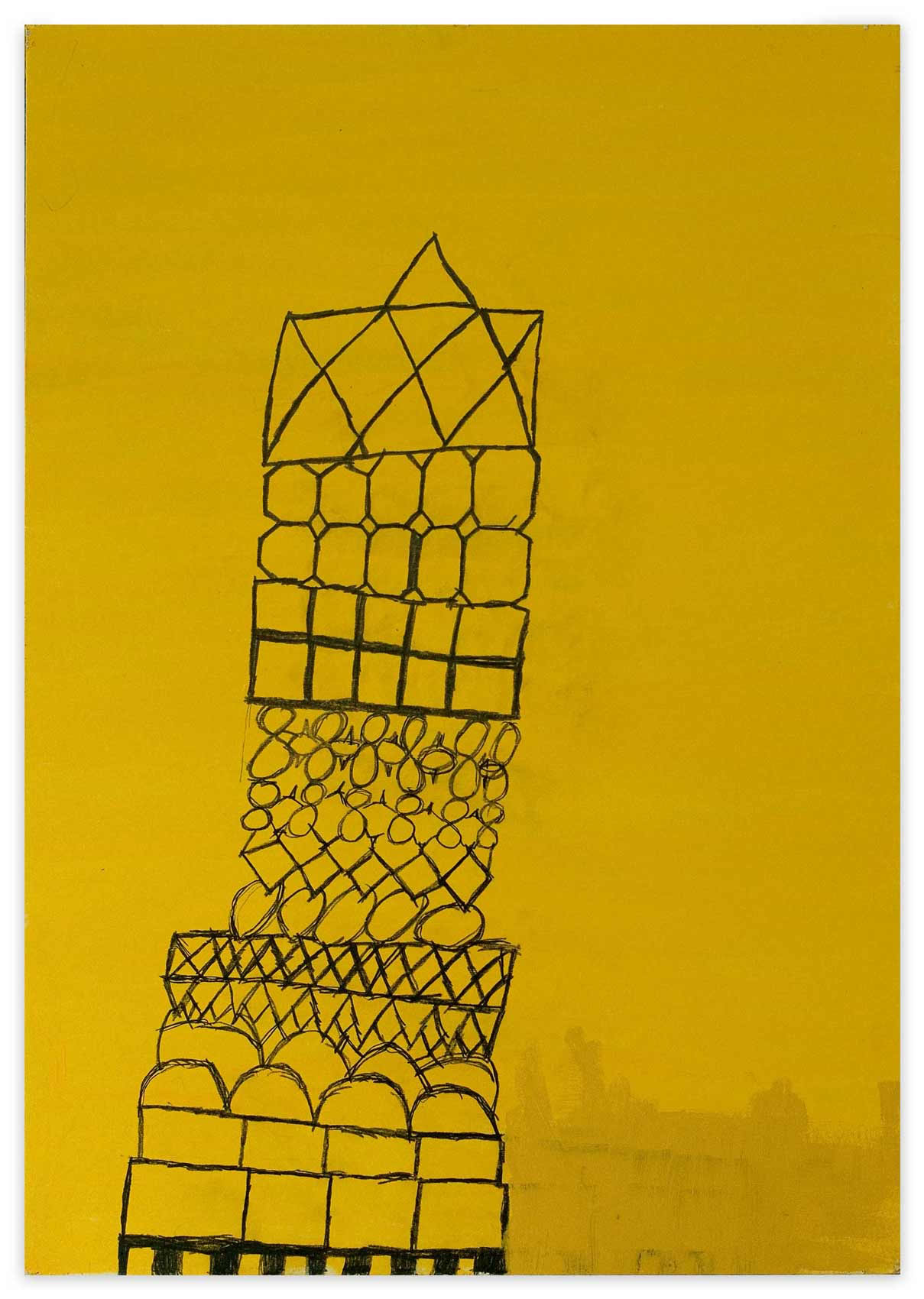 Baut man eine Haus, muss man mit dem Fundament anfangen. Man ist angewiesen auf Statik und methodische Vorgehensweise. Ansonsten kehrt der Stein nach Aristoteles zu seiner natürlichen Eigenschaft zurück: der Haufenhaftigkeit. Zeichnet man eine Haus, kann man allerdings mit den Wolken darüber anfangen. Sabine Isolas Architekturen sind keine Bauzeichnungen. Sie entstehen vielmehr in einem organischen Wachstumsprozess. An einer Stelle begonnen, beginnen sie ihr Eigenleben, wachsen fort. Sabine Isola fehlt die Übersicht beim Zurücktreten. 15 Prozent Sehkraft besitzt sie noch. Nur aus nächster Nähe sieht sie noch einigermaßen klar und scharf. Gleichwohl, sie hält einen bildnerischen Konstruktionsplan ein. Auch wenn ihre Architekturlandschaften bisweilen nicht in den sondern aus dem Himmel wachsen.